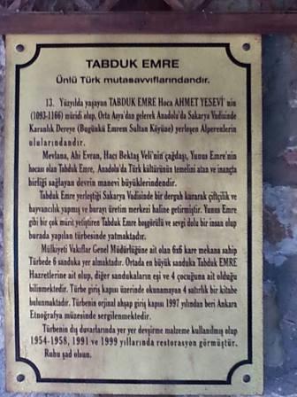 Türbe, Ankara’ya 150 km uzaklıktaki Emremsultan Köyü’nün girişinde, hafif meyilli bir arazideki mezarlığın içinde. Araçtan inip türbenin giriş kapısına baktığımda, yükselen merdivenleri görünce çok etkilendim. Merdiven kenarlarına, çıkarken okumanız için, Yunus Emre’nin, o birbirinden anlamlı sözleri yazılmış. Türbeye varana dek, bu sözler sayesinde, düşünerek çıkıyorsunuz basamakları.